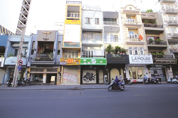 Mặt tiền tại trung tâm TP.HCM vẫn trong tình trạng ế ẩm không có khách thuê. Ảnh: Quý Hoà
