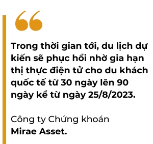 “Trong thời gian tới, du lịch dự kiến sẽ phục hồi nhờ gia hạn thị thực điện tử cho du khách quốc tế từ 30 ngày lên 90 ngày kể từ ngày 25/8/2023”, Mirae Asset nhìn nhận.