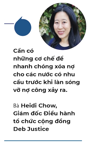 Bà Heidi Chow, Giám đốc Điều hành tổ chức cộng đồng Deb Justice, cho biết chi phí tài chính tăng cao và gánh nặng nợ nần chồng chất của những quốc gia có thu nhập trung bình thấp đang trở thành “những bóng ma” bao trùm lên tâm trí các chính phủ nước này. Nhiều quốc gia đã phải cắt giảm ngân sách dùng cho dịch vụ công, đối phó với biến đổi khí hậu để thanh toán các khoản nợ ngày càng tăng cao. Theo bà Chow, cần có những cơ chế để nhanh chóng xóa nợ cho các nước có nhu cầu trước khi làn sóng vỡ nợ công xảy ra.