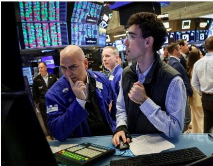 Nhân viên giao dịch trên sàn chứng khoán New York (NYSE). Ảnh: Reuters