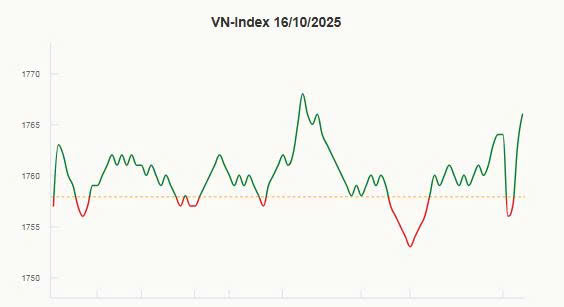 Về cuối giờ, VN-Index phục hồi tốt và đóng cửa sát 1.767 điểm, tích lũy thêm gần 9 điểm so với hôm qua.