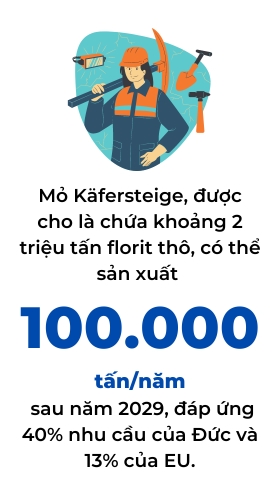 Käfersteige nằm trên mỏ florit lớn nhất châu Âu, một thành phần quan trọng trong việc sản xuất ô tô điện. Mỗi cục pin trong chiếc Volkswagen ID.4, chiếc SUV điện đầu tiên của công ty, cần khoảng 10kg khoáng chất này.