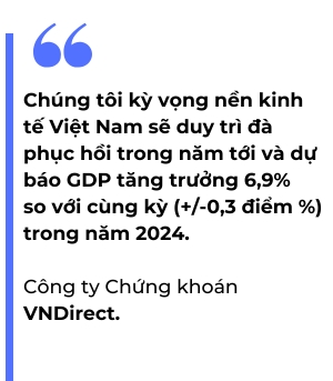 “Chúng tôi kỳ vọng nền kinh tế Việt Nam sẽ duy trì đà phục hồi trong năm tới và dự báo GDP tăng trưởng 6,9% so với cùng kỳ (+/-0,3 điểm %) trong năm 2024”, VNDirect nhìn nhận thêm.