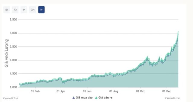 Sáng 22/12, Công ty cổ phần đầu tư vàng Phú Quý niêm yết giá bạc miếng tại 2,98 – 3,07 triệu đồng mỗi lượng, tăng khoảng 6% so với hôm qua. Công ty Sacombank – SBJ mua bán mặt hàng này quanh 2,82 – 2,89 triệu đồng.