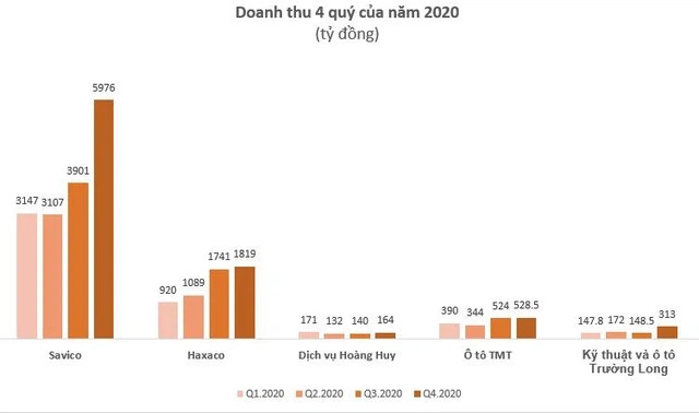 Trên sàn niêm yết hiện có 5 doanh nghiệp đang kinh doanh mặt hàng ô tô trong đó Dịch vụ tổng hợp Sài Gòn (SVC) đã bứt phá trong nửa cuối năm trong đó đáng kể nhất là quý IV khi doanh thu thuần đạt 5.976 tỷ đồng, tăng 15% so với cùng kỳ năm 2019, LNST đạt 133,3 tỷ đồng quý IV, tăng đến 87% so với lợi nhuận đạt được quý IV/2019, trong đó lợi nhuận sau thuế ghi nhận về cho cổ đông công ty mẹ đạt hơn 86 tỷ đồng. Luỹ kế cả năm 2020 doanh thu thuần đạt 16.129 tỷ đồng, giảm 11,7% so với năm trước đó, nhưng cũng vượt hơn 9% kế hoạch năm. Nhờ tiết giảm chi phí tài chính, chi phí bán hàng và cả chi phí giá vốn, nên lợi nhuận sau thuế thu về đạt hơn 224 tỷ đồng, còn giảm 3,9% so với năm 2019 nhưng vẫn hoàn thành gấp đôi chỉ tiêu lợi nhuận được giao cho cả năm.