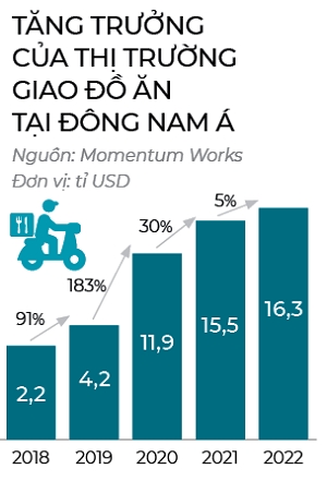 Theo báo cáo của Công ty nghiên cứu Momentum Works, tổng chi tiêu (GMV) cho dịch vụ giao đồ ăn trong năm 2022 của các nước Đông Nam Á lên đến 16,3 tỉ USD, tăng 5% sau 2 năm bùng nổ giao hàng sau dịch bệnh. Lần đầu tiên sau 3 năm, sự tăng trưởng chủ yếu được thúc đẩy bởi các thị trường quy mô nhỏ trong khu vực gồm Philippines (tăng 0,8 tỉ USD), Malaysia (tăng 0,6 tỉ USD) và Việt Nam (tăng 0,3 tỉ USD).