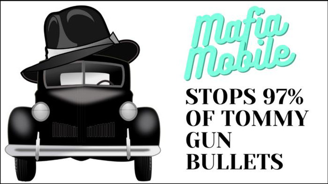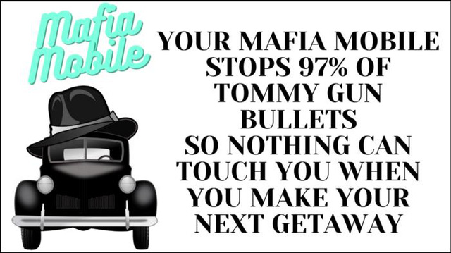 Quảng cáo chỉ nêu bật lợi ích: Mafia Mobile – Bạn sẽ luôn sống sót khi ở trong chiếc xe này.