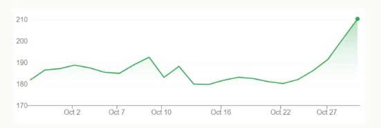 Cổ phiếu hãng này tăng nhanh từ phiên 28/10, sau khi CEO Jensen Huang thông báo hàng loạt tin tức trong một hội thảo ở Washington (Mỹ). Theo đó, Nvidia đã nhận các đơn hàng chip AI trị giá 500 tỷ USD. Toàn bộ chip Blackwell – chip AI nhanh nhất của hãng – hiện được sản xuất hoàn toàn ở Arizona (Mỹ). Trước đó, các loại chip tiên tiến nhất của Nvidia chỉ sản xuất ở Đài Loan (Trung Quốc).