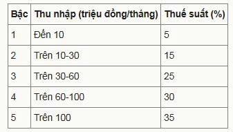 Theo đó, từ 1/7/2026, biểu thuế lũy tiến từng phần với thu nhập cá nhân giảm từ 7 bậc xuống còn 5 bậc và nới rộng khoảng cách giữa các bậc. Theo đó, mức thuế thấp nhất là 5% áp dụng với thu nhập đến 10 triệu đồng một tháng. Thuế suất cao nhất vẫn là 35% với thu nhập trên 100 triệu đồng, thay vì mức 80 triệu như hiện nay.