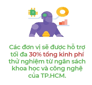 TP.HCM sẽ hỗ trợ mặt bằng, cơ sở hạ tầng trong khu công nghệ cao, khu thông tin tập trung, trung tâm đổi mới sáng tạo của thành phố có mục đích sử dụng phù hợp để phục vụ việc thử nghiệm giải pháp. Các đơn vị cũng sẽ được miễn xin phép trong trường hợp sản phẩm thử nghiệm sử dụng các công nghệ được quy định. Đồng thời, các đơn vị sẽ được hỗ trợ tối đa 30% tổng kinh phí thử nghiệm từ ngân sách khoa học và công nghệ của TP.HCM.